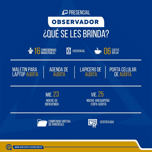 a participar en la X Convención Nacional de Auditoría, AUDITA-2023 que se realizará en la ciudad de Arequipá los días 24, 25 y 26 de agosto del 2023.